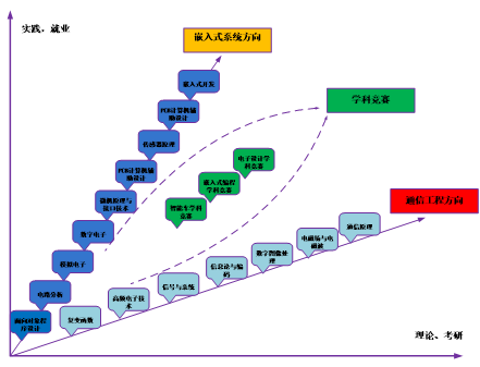 (2)突出“软硬结合,点线成面”作为全校唯一软件和硬件结合的专业,以单片机/传感器为点,以信号/通信为线,强力开拓学生硬件工程师设计能力,并嫁接多层次的软件设计能力,实现学生的专业综合素质;