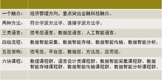 (2)突出“懂人工智能方法的金融师,会金融分析的算法工程师”作为全校深度嫁接融合的专业,以人工智能专业知识为核心,以金融经济领域知识为融合对象,强力开拓学生使用人工智能方法学定量分析金融经济领域问题的能力,并嫁接信号和数据层次的算法设计能力,提高学生的专业综合素质;