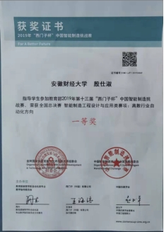图14 教育部最高学科比赛:西门子杯智能制造全国一等奖