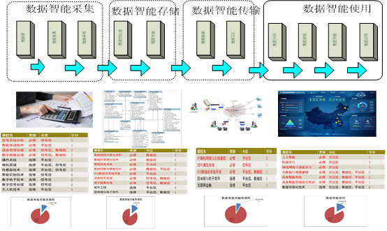 如图9所示,以数据的智能采集、存储、传输和使用分为四个流程和模块,不断丰富和优化,突出数据智能存储和数据智能分析两个重点模块,涵盖数据智能采集和数据智能传输两个不可或缺的模块,使得培养人才具有完整、丰富和可延展的数据智能处理流程知识。