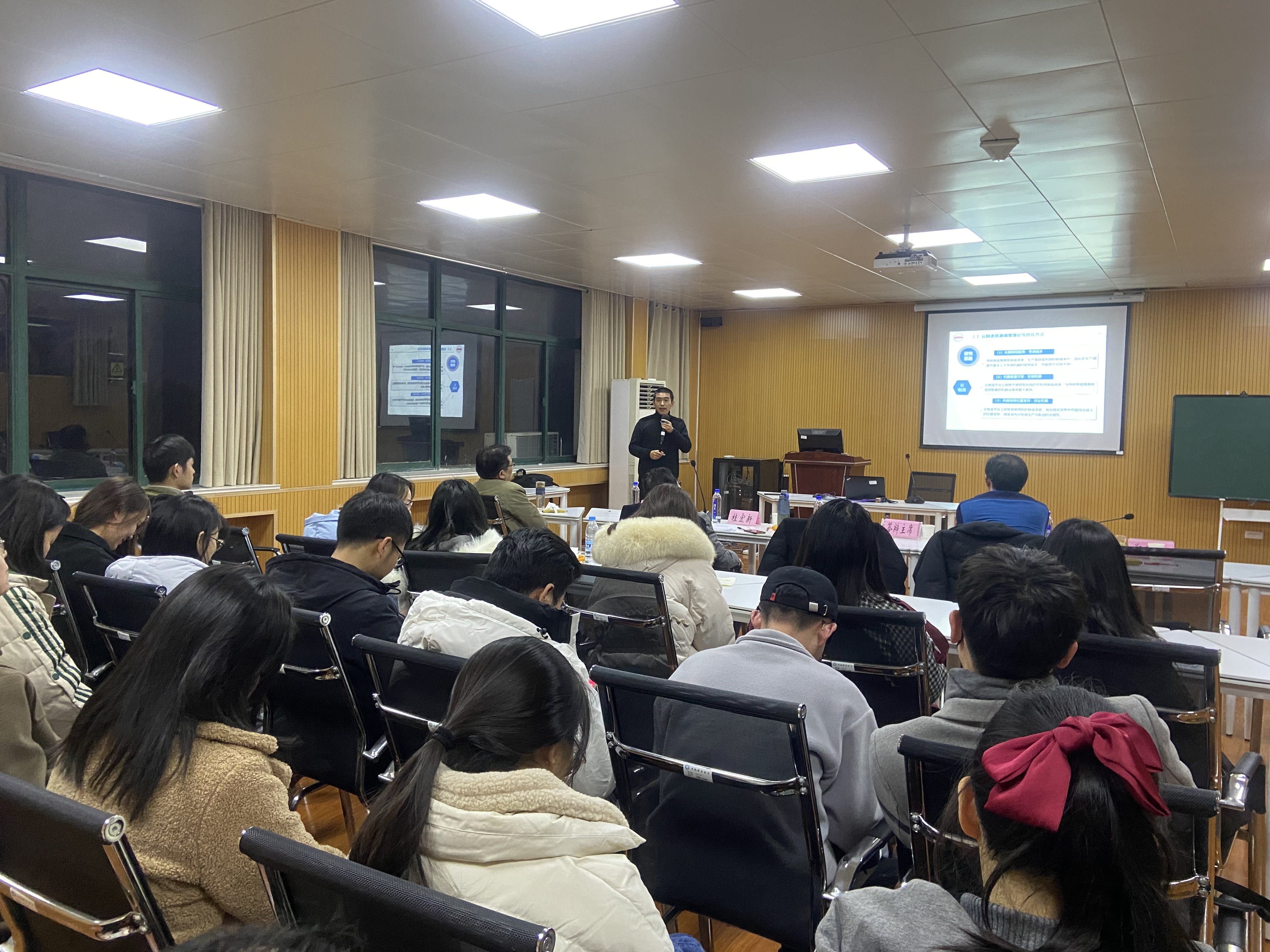 李凯从物质流与能源流耦合的调度理论与优化方法、拉动式供应链协调调度理论与优化方法、云制造云资源调度理论与方法及再制造多产品生命周期管理理论与优化方法四个层次入手,并从研究动机、研究思路、学术评价及科学价值四个方面展开详细论述。最后,李凯就参会老师及同学们提出的问题进行了详细解答。
