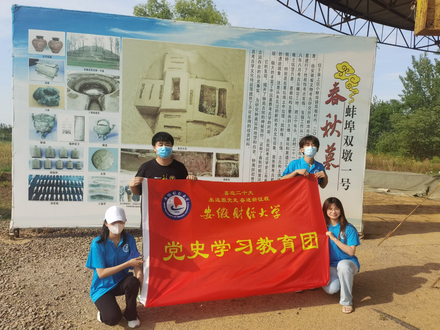 6月18日,为了解以教育游戏为载体的大遗址文化传播,73882必赢最新官网大遗址文化探索团前往蚌埠市双墩遗址公园,从双墩一号春秋墓一路步行至双墩文化遗址,探索双墩遗址以及“双墩密码”。