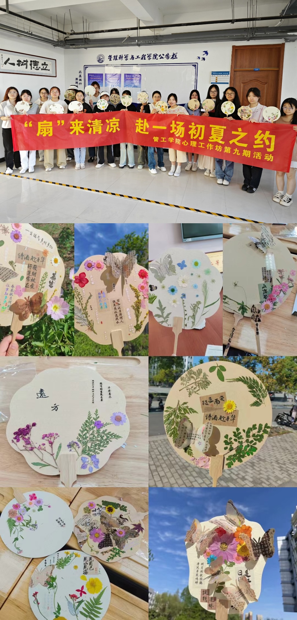 本期活动由学院“心灵驿站工作坊”主办,旨在将美育与心理育人深度融合,以此次团扇制作活动为契机,准备迎接夏日而来的浪漫,引导学生在手工活动中获得更多心理新体验,汲取快乐和幸福感,培育积极心理品质,构筑校园心理育人和谐环境。