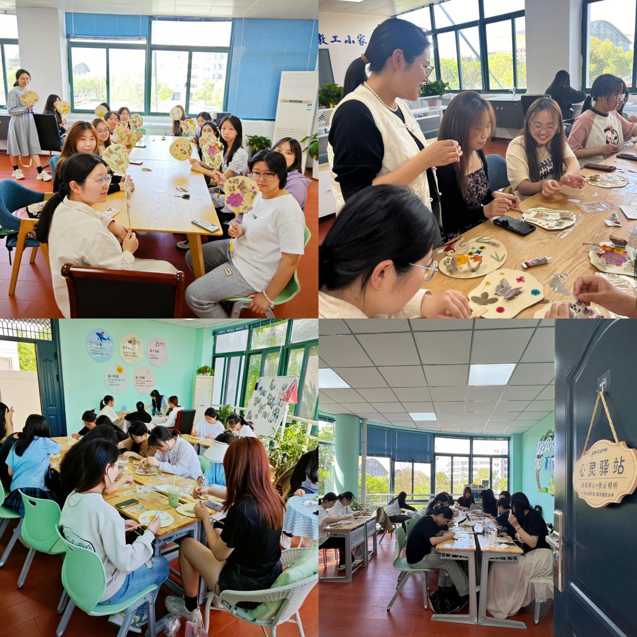 4月24日下午,学院在龙湖东校区广学楼举办第九期“心灵驿站工作坊”——DIY制作团扇活动。本次活动有35名同学参与,学院专职辅导员、学生心理健康教育负责人汪慧主持。