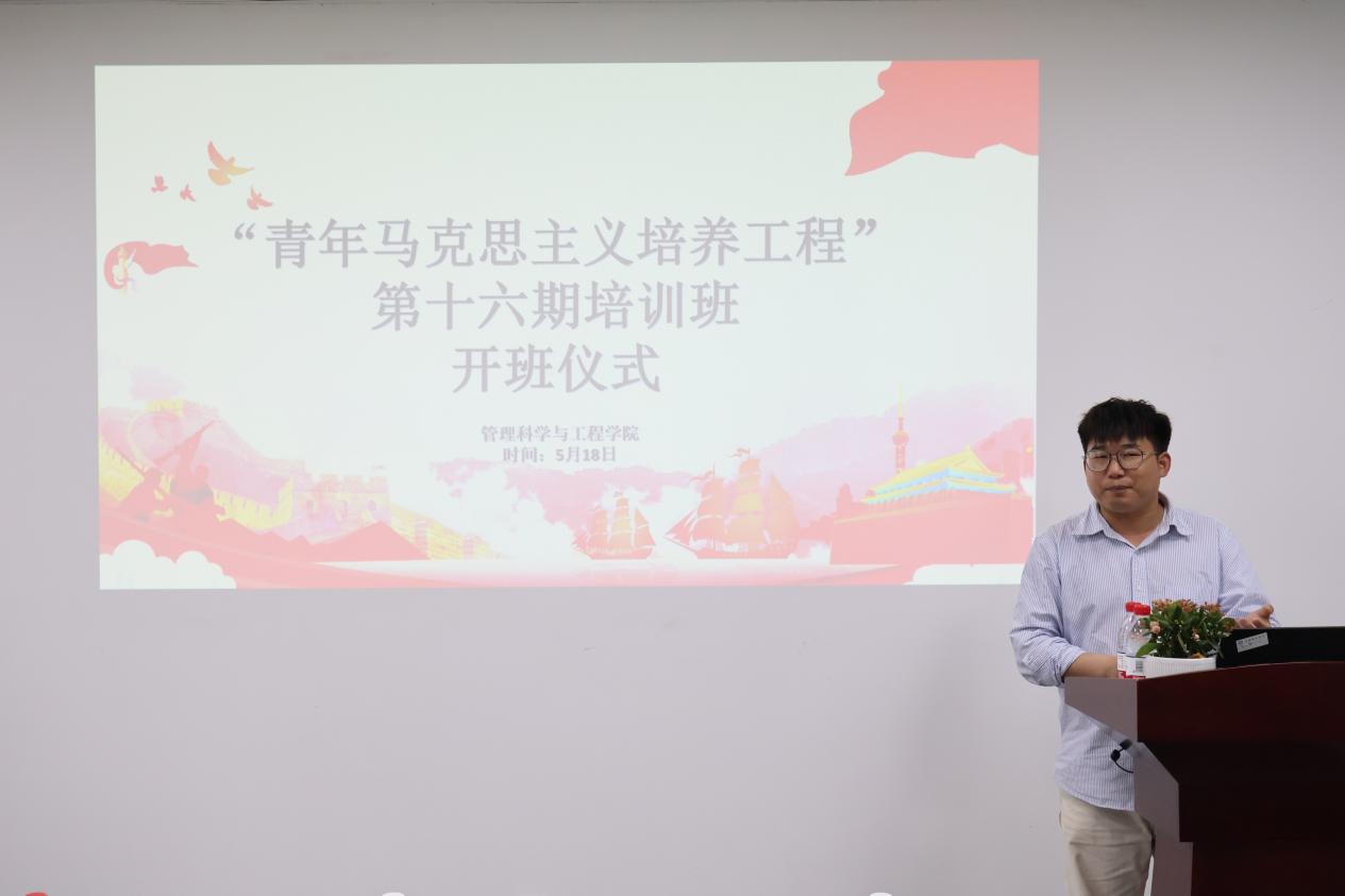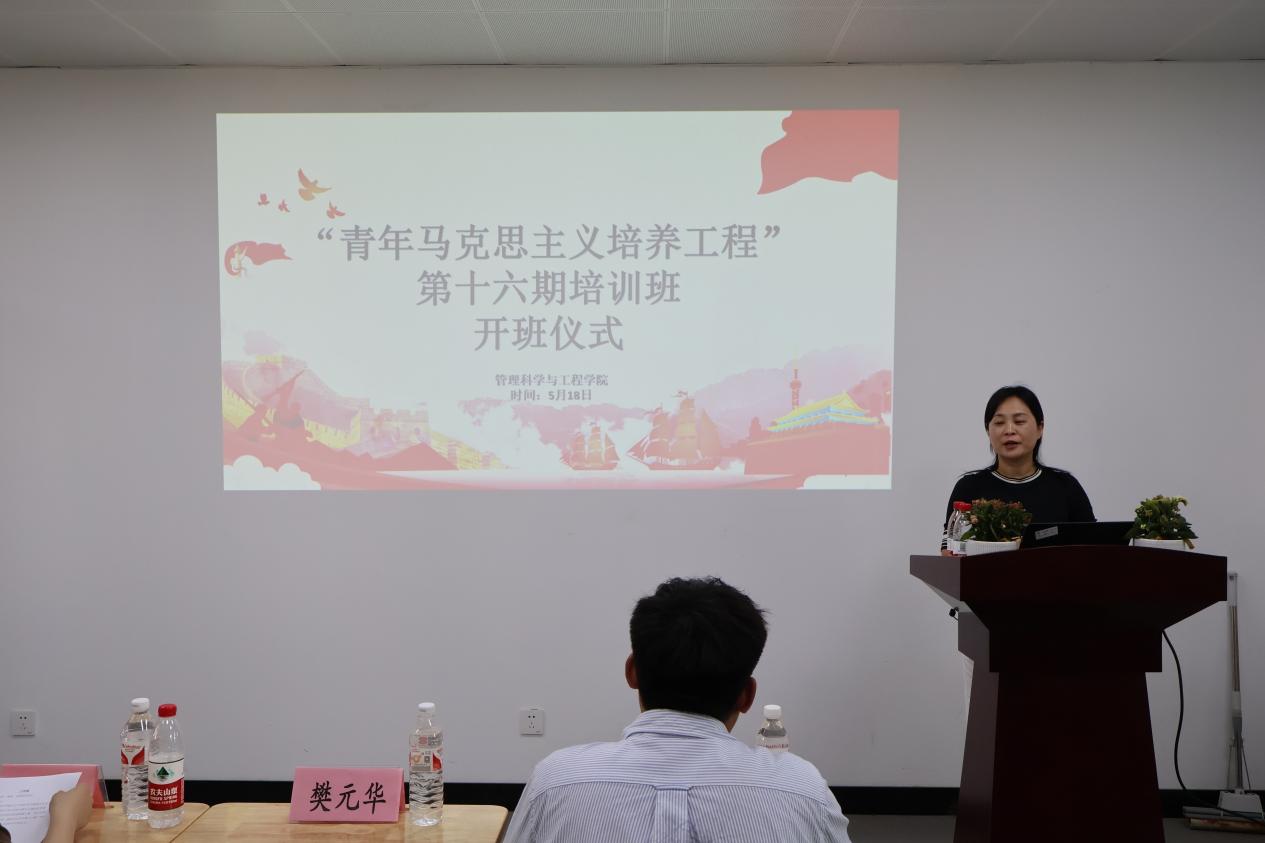 5月18日下午,学院于广学楼211教室开展第十六期“青年马克思主义培养工程”培训班开班仪式,并邀请马克思主义学院胡可可老师作主题授课。学院党委副书记樊元华出席并作开班讲话,全体青马班学员参加。学院团委书记丁莹主持开班仪式。
