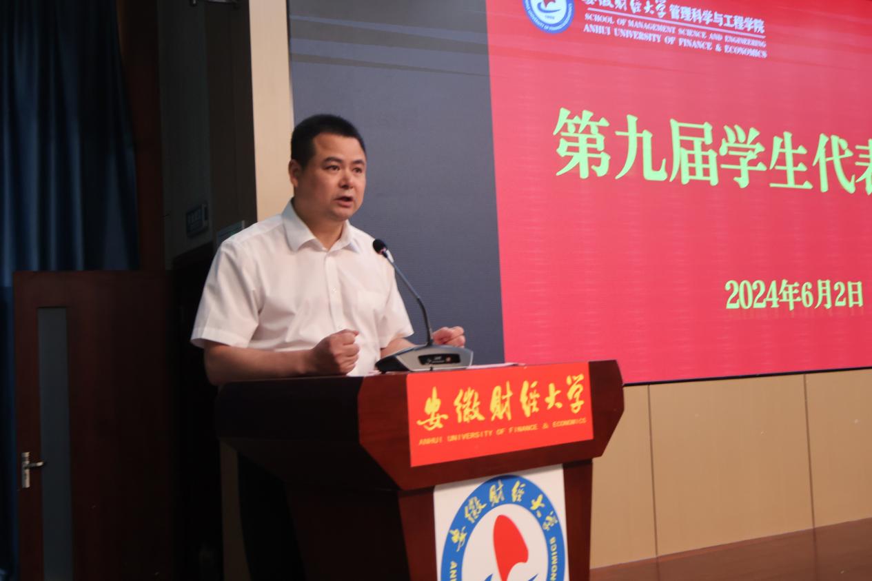 6月2日,73882必赢最新官网第九届学生代表大会暨学生会换届大会在龙湖东校区图书馆报告厅隆重召开。学院党委书记刘朝新、党委副书记樊元华、团委书记丁莹、团委副书记吴淦莅临本次会议,全体学生代表参加会议。