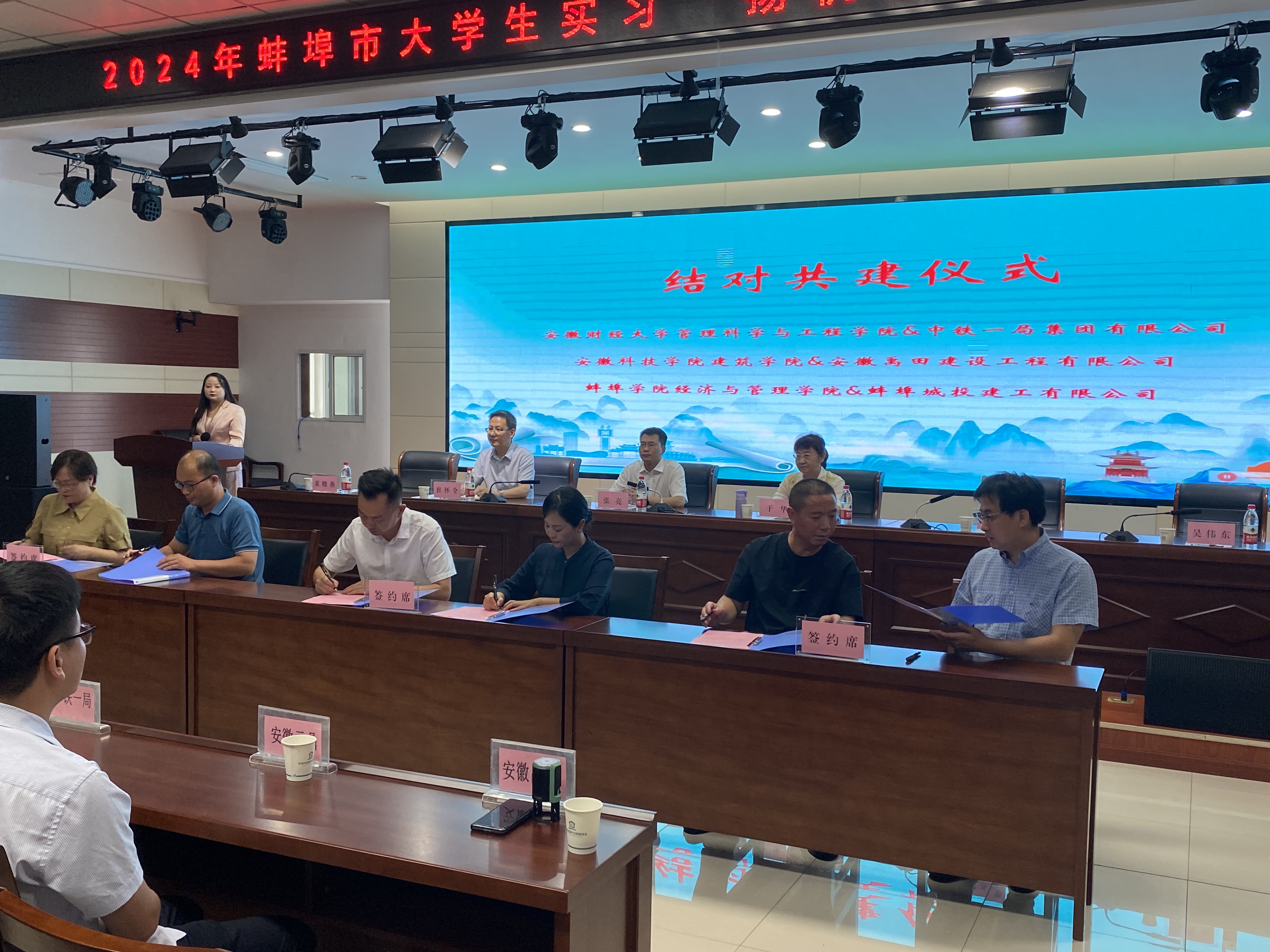活动现场,学院党委副书记樊元华代表学院与中铁一局建设集团有限公司签订了实习共建协议。经过前期报名,学院共计34名工程管理、工程造价专业学子参加活动,他们将在市住建局机关及下属单位、中铁城建集团有限公司、蚌埠城投建工有限公司、中铁二十四局集团有限公司、中铁一局集团有限公司等22家驻蚌单位开展为期1个月的实习。同时,安徽省2024年大学生实习“扬帆计划”也于6月14日开始报名,经过充分动员,学院2名2022级研究生成功录取,分别于安徽省科学技术情报研究所、安徽省高速地产集团有限公司开展暑期实习。
