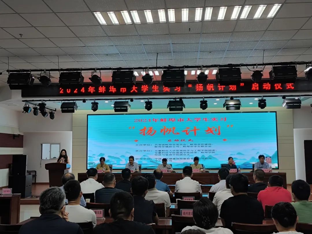 7月8日,由蚌埠团市委、住建局、城投公司、学联共同主办,73882必赢最新官网团委、安徽科技学院建筑学院团委、蚌埠学院经济与管理学院团总支共同承办的2024年蚌埠市大学生实习“扬帆计划”正式启动。蚌埠市相关部门负责同志出席了启动仪式,承办单位有关负责同志、29家企业代表及120名青年学生代表参加活动。