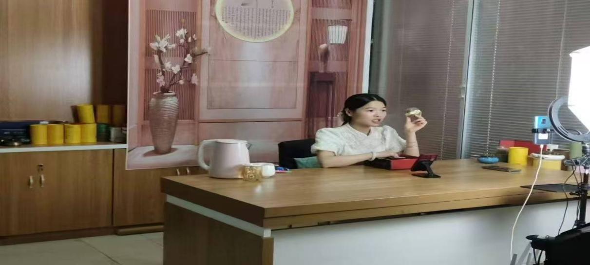 随后,团队来到了公司的电商直播间。走进直播间,通过参观专业的直播间布置、热情洋溢的主播以及频繁的观众互动,团队成员们深刻感受到了直播带货的无限可能。魏明国经理介绍道,由于受到疫情带来的巨大的市场影响,目前公司产品主要通过电商平台销售,如拼多多和淘宝,并在抖音进行直播推广。