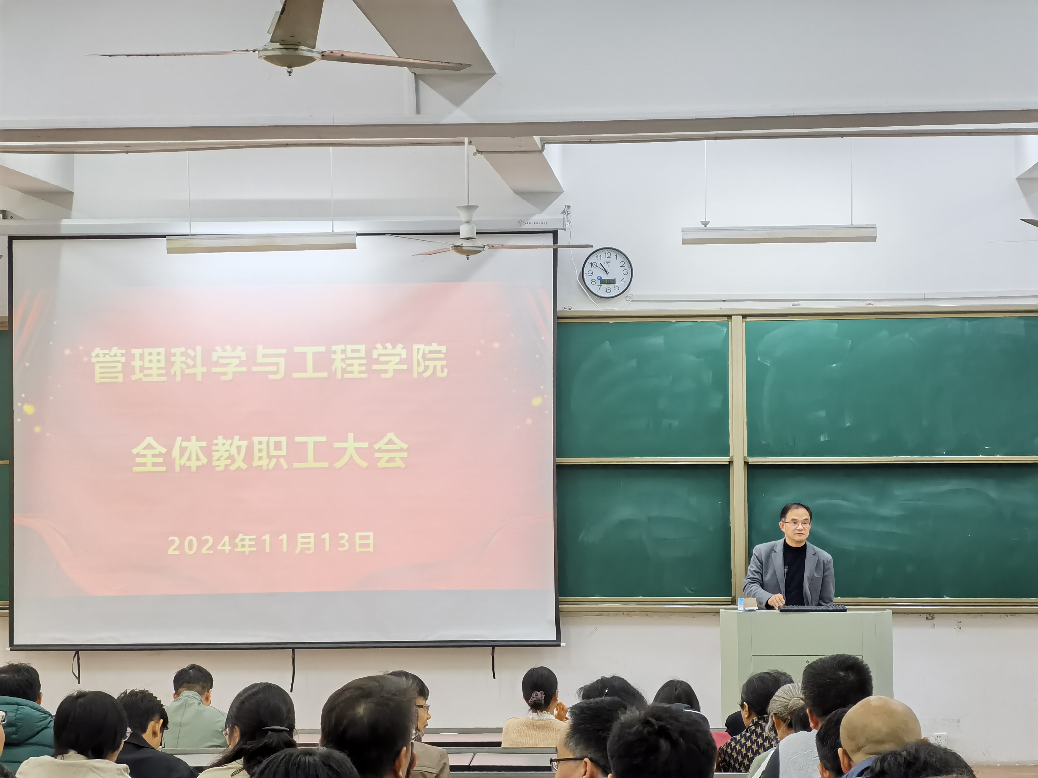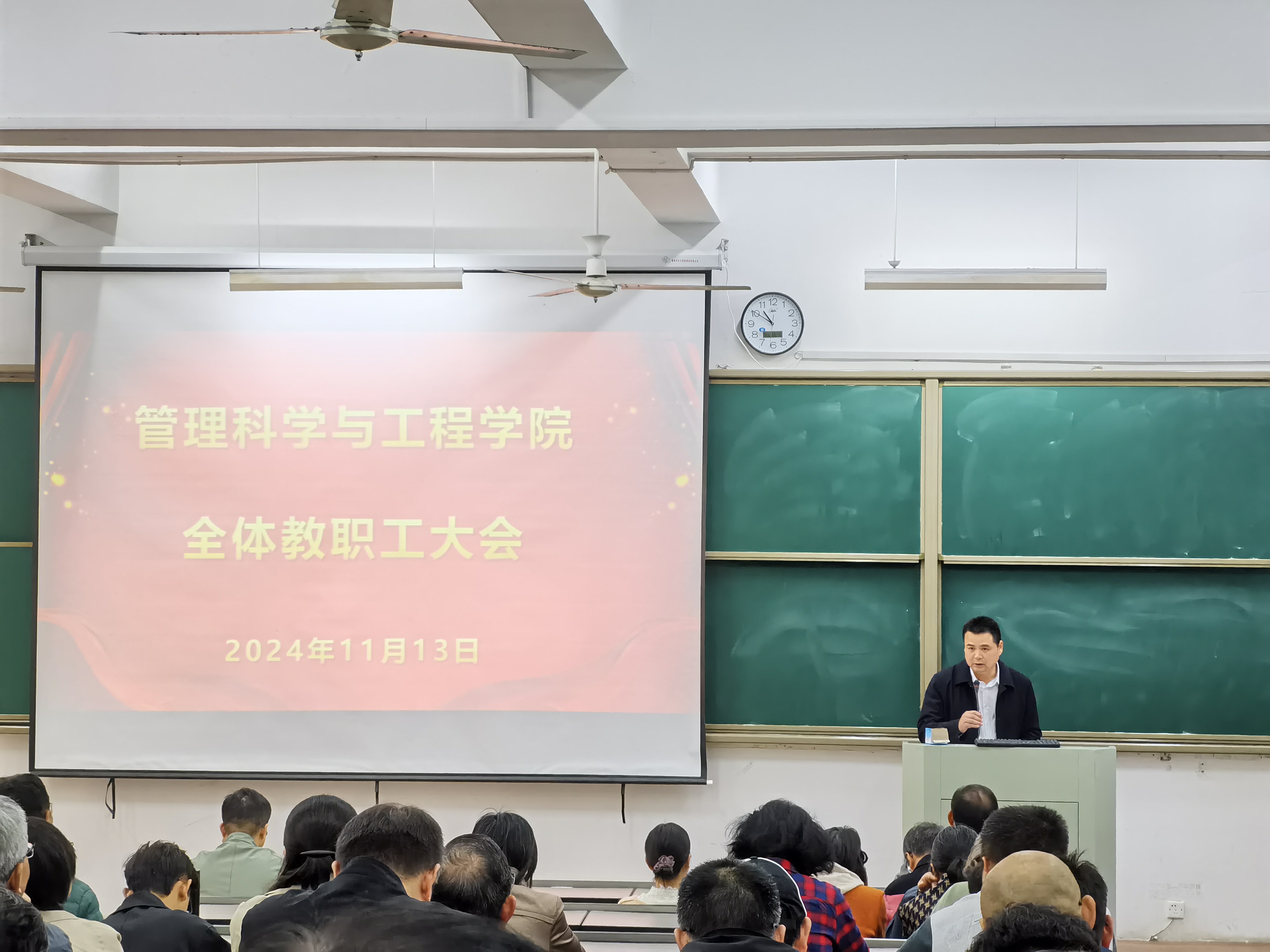 11月13日下午,学院在广学楼101教室召开了全院教职工大会暨政治理论学习会,大会由院长戴道明主持,全院教职工参加会议。
