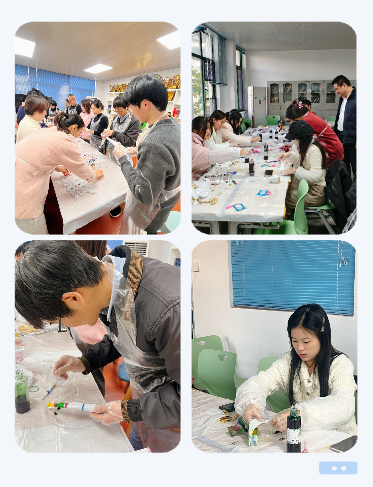 为了弘扬中华优秀传统文化,增强师生之间的沟通与协作,丰富校园文化生活,学院工会联合学生心理驿站工作坊于11月27日下午成功举办了主题为“染出色彩,体验非遗扎染”的文化活动。此次活动分别在学院“教工小家”和广学楼211教室举行,吸引了来自全院50余名师生共同参与体验。