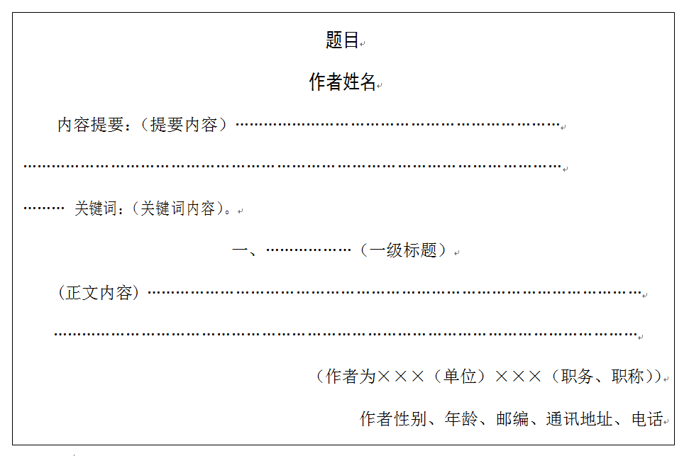 1.论文要素按顺序包括:题目、作者姓名、内容提要、关键词、正文、作者介绍。